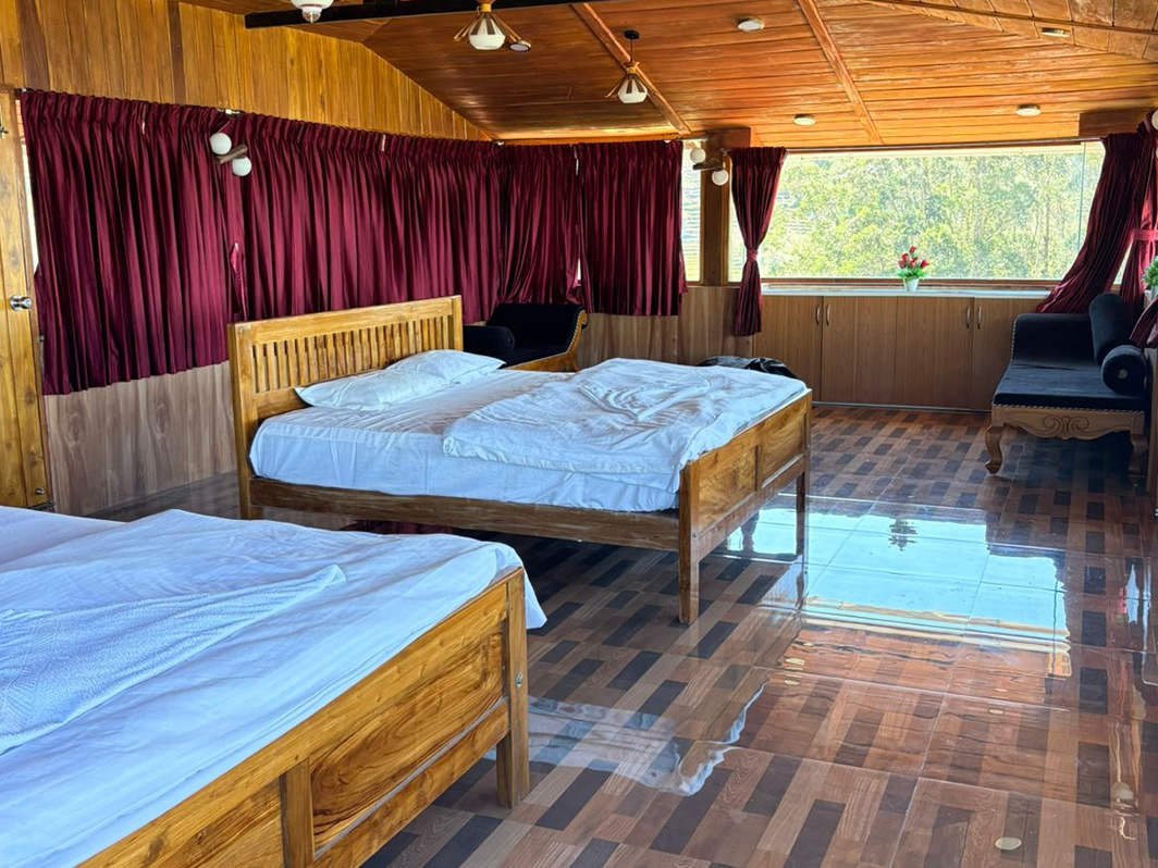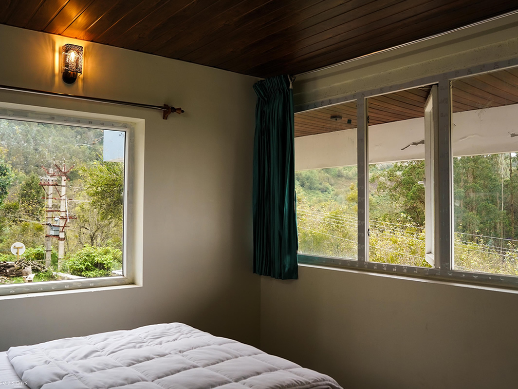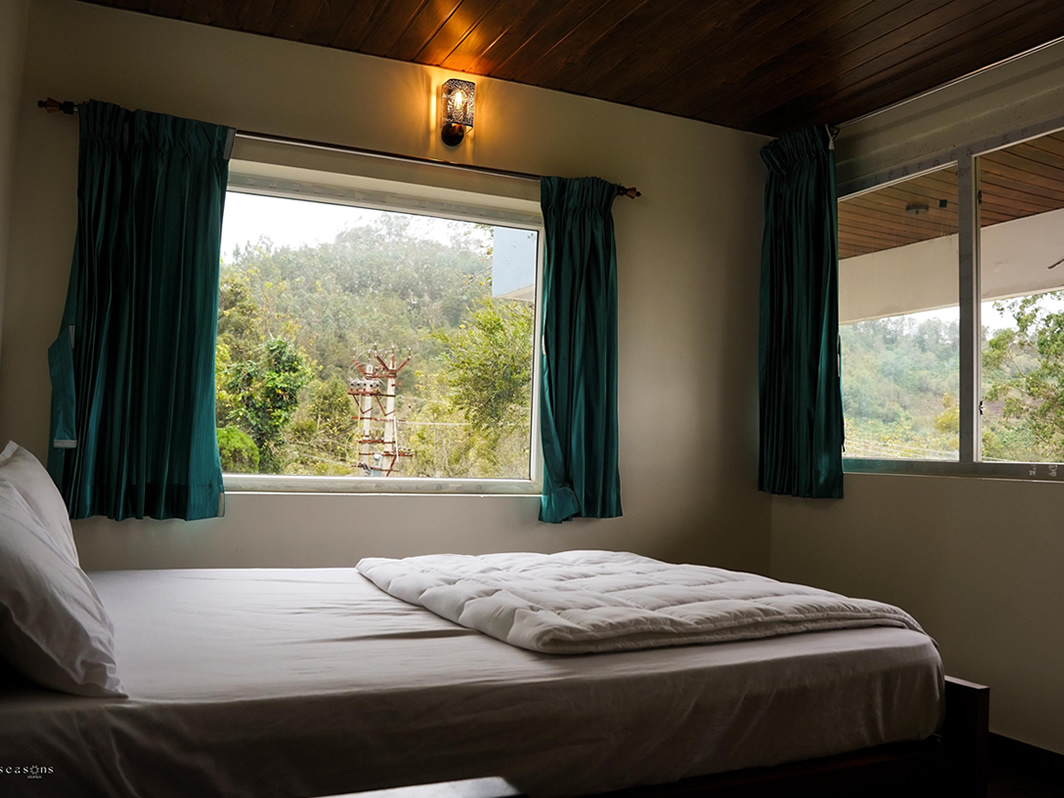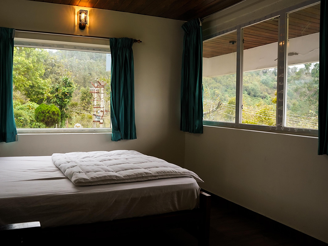 A spacious and cozy room with stunning mountain views—perfect