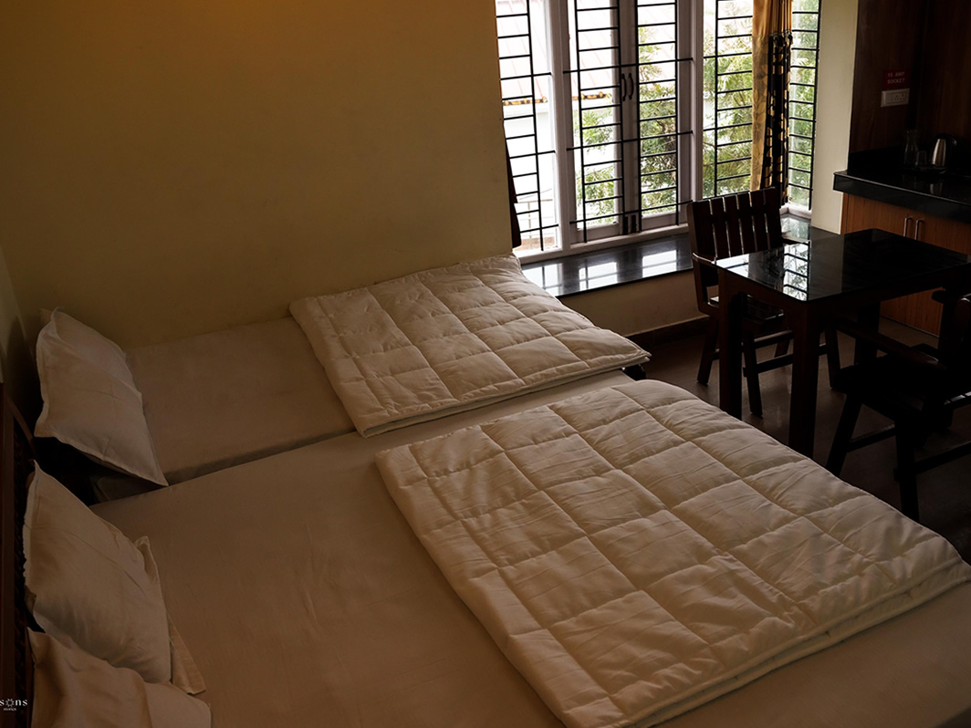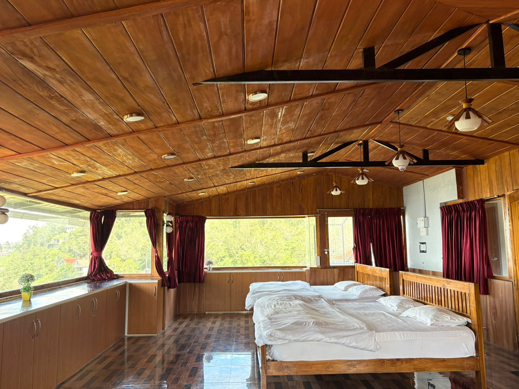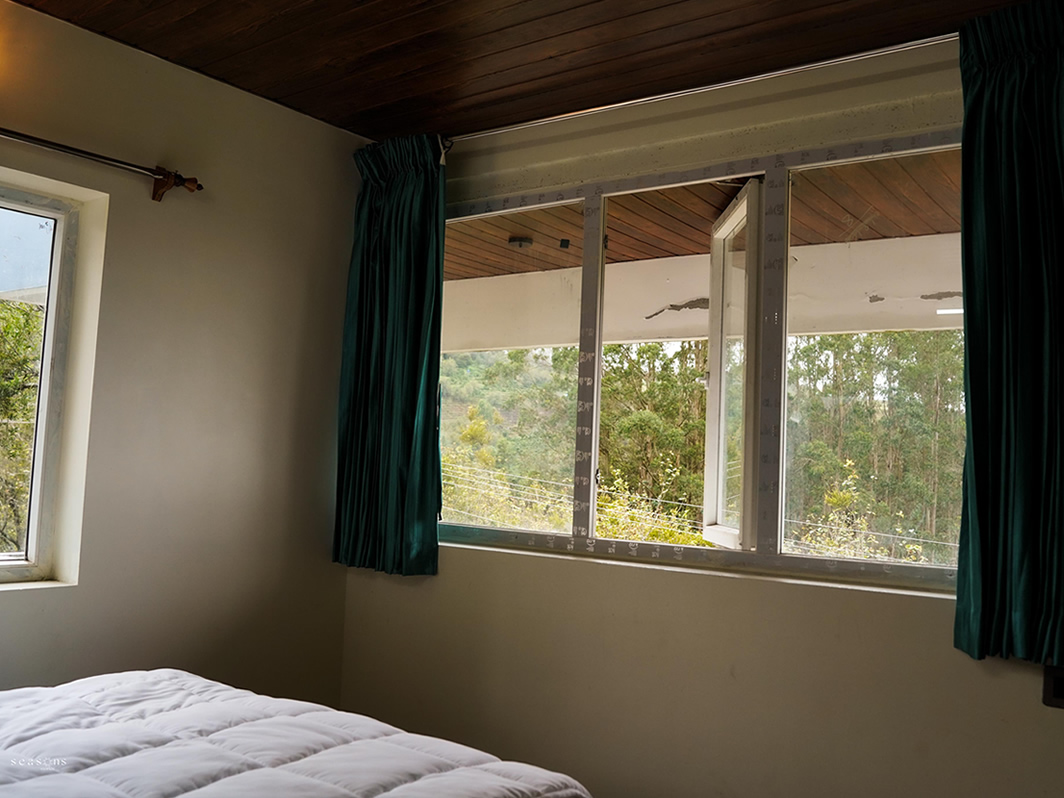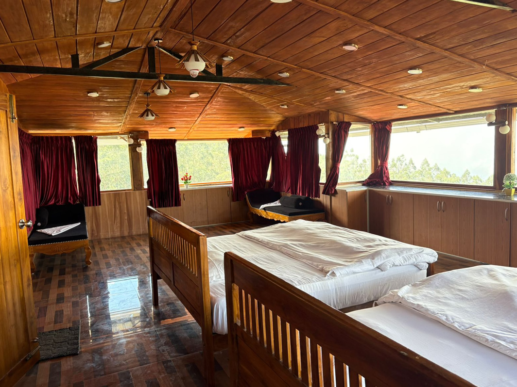 A spacious and cozy room with stunning mountain views—perfect