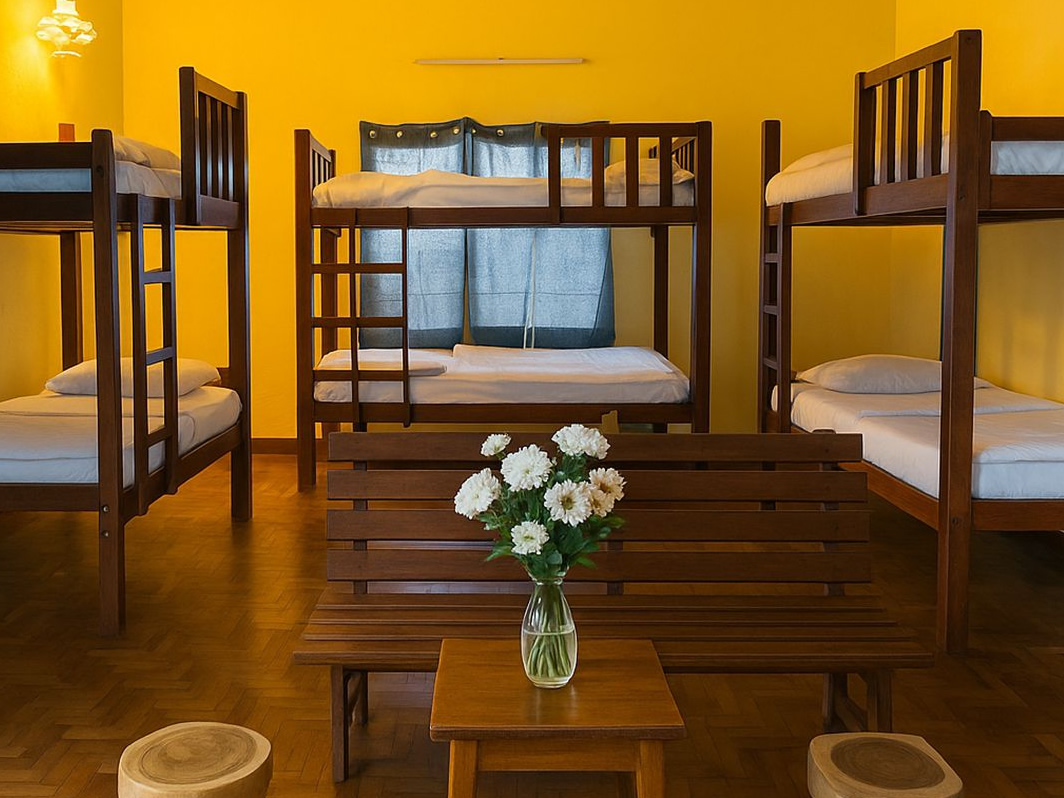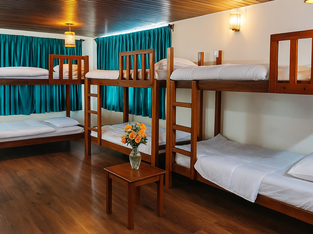 A bed in a lively mixed dorm with private lockers, an ensuite, and a spacious room