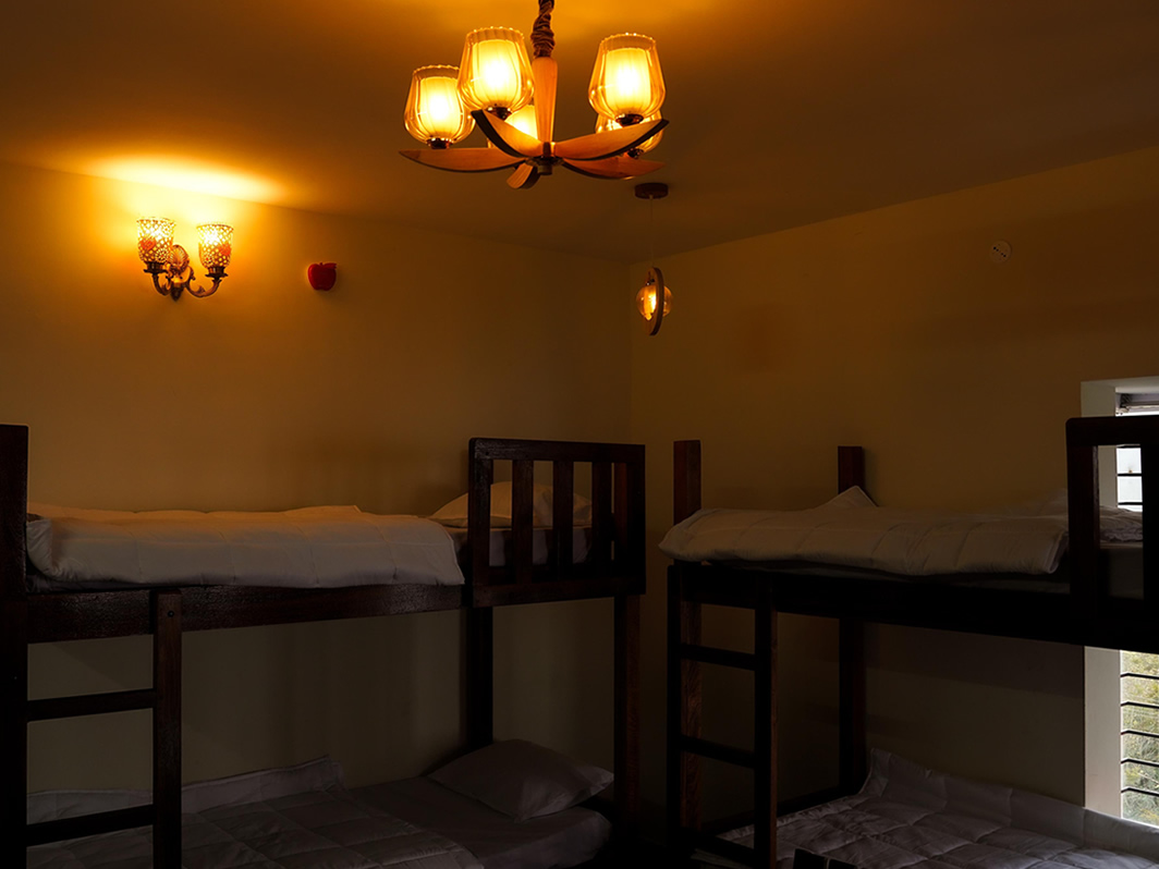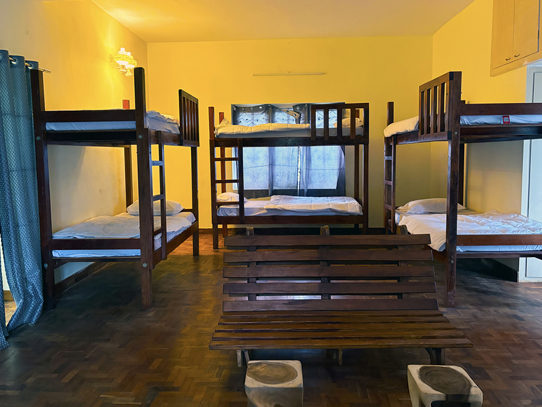 Bed in 4 bed mixed dormitory with balcony and Mountain View Mixed dormitory style